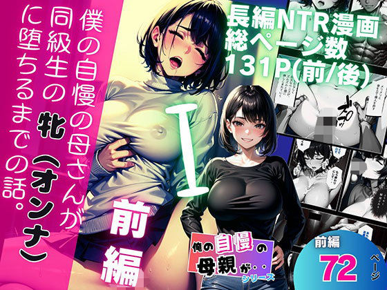 僕の自慢の母さんが同級生の牝(オンナ)に堕ちるまでの話。 前編|| 【ストーリー】夫に先立たれ、女手一つで息子を立派に育てている母親の志穂。ふとした事から、息子の友達に弱みを握られ、たくさんのセックスと様々な恥辱行為を強●させられやがて牝(オンナ)へと変えられていく寝取られ話です。本編はその前編で、志穂が牝へと変えられていく一歩手前までのストーリーです。【作風】女性(志穂)視点で物語は進みます。亡き夫への貞操と愛する息子のため、弱みをを握らても毅然と振舞うが快楽を与え続けられ、変わりゆく自分への苦悩と葛藤を丁寧に描いてます。ゆっくり堕ちていく系が好みの方ははおすすめの作品です。【プレイ】・セックス (正常位/バック/騎乗位)・ディルド騎乗強●自慰・昼間の公園で露出・公園のトイレでのセックス【収録内容】全編フルカラー◆コミック本編 74ページ(前編のみ) 1024×1534px、png形式◆おまけCG集 25枚 1536×2304、png形式※公園露出シーンや本編未掲載のイメージイラスト(セリフ無し)※本作はStableDiffusionI作られたAI生成素材を元に加工、コマ割り、テキストなどを追加し制作されています。※技術的な制約やAIの学習データにより、微細部分に不完全さや非自然さが見受けられることがあります。ご購入に際し、これらの事実を理解し同意いただいた上でのご検討をお願い申し上げます。
