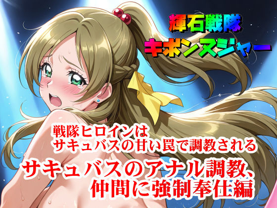 【輝石戦隊キボンヌジャー】 戦隊ヒロインはサキュバスの甘い罠で調教される 【3】『サキュバスのアナル調教、仲間に強●奉仕編|| 【作品内容】ニ種類、用意しました。ページ数:39頁(表紙等含む)ページ数:48頁(表紙等含む)スカトロ注意版表紙のみAIを一部利用しております。□□□□■□□□□■□□□□■□□□□■□□□□■□□□□■□□□□■□□□□■【本編、冒頭】『2.サキュバスのレズ調教編』の続き! 仲間全員を巻き込んだ恥辱のショー。 奏の心に残るのは、守りたかったはずの仲間の前で、無様に快楽を晒してしまった絶望だった――。 磔にされたグリーンは、顔を覆うことすら許されず、滴る液を受け止めるしかなかった。「や、やめて……見ないでぇっ……!」 奏は涙を浮かべ、両手で顔を隠すように震えた。 そんな彼女の耳元に、サキュバスの艶めいた声が絡みつく。「仲間の奏に……オシッコなんてぶっかけられちゃって……惨めねぇ〜」 その言葉に、グリーンは猿轡で歯を食いしばる事すら出来ず、奏は羞恥に心臓を締め上げられるような錯覚に陥った。 サキュバスは、グリーンの頬を舌で嘲弄するように舐めながら、奏へ問いかける。「ねぇ、奏ちゃん。こんな惨めな男に対して……女は、どうすればいいと思う?」「……っ……」 奏の唇が震える。だが、答えは声にならなかった。「答えられないのねぇ……可愛い でもね、教えてあげる……こういう時、女はね――」 その先端が淫らに震える尻尾を、グリーンの下半身へと這わせながら、観客へ見せつけるように宣言した。「男の肉棒を、慰めてあげるのよぉ」 サキュバスの艶めいた囁きがリングに響いた瞬間、観客席からは歓喜の声が爆発した。「やれぇ!」「仲間のチ○ポ舐めてやれぇ!」「戦隊ヒロイン様が、ご奉仕だぁ!」 奏はかぶりを振り、涙を浮かべて必死に拒んだ。「ち、違う……っ! 私はそんなこと……っ、できない……っ!」 だが、サキュバスは、血と欲望に濡れた尻尾をするりと奏の腰に巻きつけ、そのまま強引に引き寄せた。「可愛い抵抗……奏ちゃん」 サキュバスは耳元に唇を寄せ、あざけるように、けれど優しく包み込むような声で囁いた。「観客も、仲間も……もう‘その姿’しか求めていないのよ でもね……アタシは、そんな無理矢理に男の肉棒を舐めようとする奏ちゃんなんて、見たくないの……」 その言葉は、まるで母が子を慰めるような柔らかさだった。だが、奏の理性は、その奥に潜む甘い罠を察して震えた。「そ……そんな……っ、私は……っ……」 奏は涙を溜めながらかぶりを振ったが、サキュバスは――。さらに身体を寄せ、吐息を吹きかけながら言葉を続けた。「だからね……まずは‘男が気持ちよくなるところ’を、アタシが奏ちゃんに教えてあげる 奏ちゃんの身体で……ね」シュルッ… 艶めかしい声と共に、サキュバスの尻尾がするりと動いた――。 蛇のようにしなやかに奏の背後を這い、お尻の割れ目へと入り込んでいく。「ひぁっ……! な、なにを……っ……!」すりゅ…… ぬりゅっ…… すりゅ…… ぬりゅっ……【体験版に続きが、もう少しあります!】