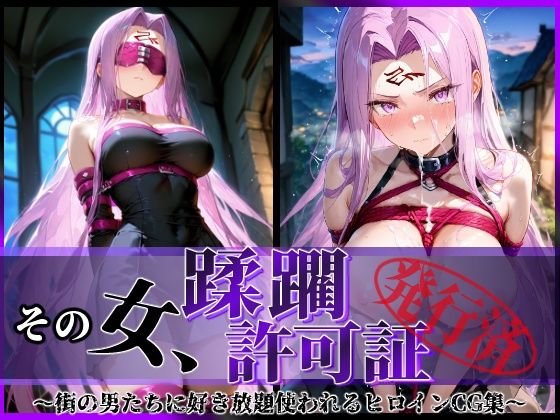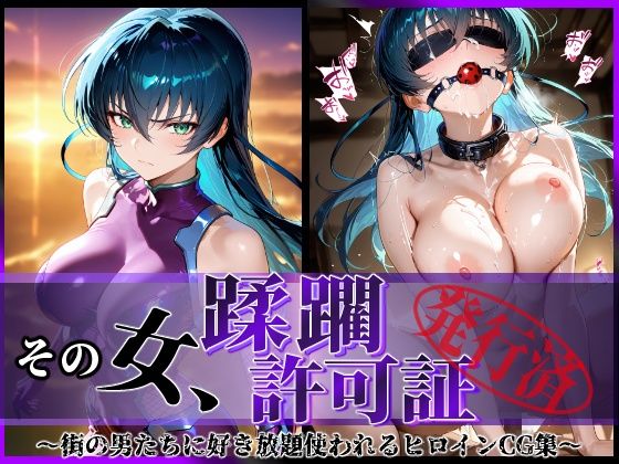 その女、蹂躙許可証発行済み -街の男たちに好き放題使われるヒロインCG集- 源頼光編|| 【あらすじ】蹂躙許可証…それが発行された女であれば街の人間は誰でもその女を好き放題にすることができるという。これは男たちの欲望によって蹂躙され、弄ばれ、堕とされるヒロインの記録。【作品コンセプト】蹂躙×着エロ×美脚がコンセプトの作品となります。苦渋や快楽に歪むヒロインの表情はもちろん、服を着ているからこそ感じるエロスを存分にお楽しみください。(着エロだけにならないよう裸や裸に近いCGも複数収録しています)また、本シリーズは特に足に力を入れて制作しています。スラっとした足を存分に堪能していただけると思います。【作品情報】フルカラー画像:png画像ファイル250枚(差分無し・一部擬音付き)画像サイズ:1824×1248(縦長)【収録内容】・パイズリ・フェラ・腿コキ・バイブ責め・ぶっかけ・拘束・潮吹き・中出し・乱交・キスハメ・野外・露出・青姦・辱め・ぶっかけ・アへ顔・断面図あり・快楽堕ち・口内指責め・髪引き【作品作成にあたって】※本作はStableDiffusionを使用しています。※加筆修正はしておりますが、AIイラストのため、 一部に破綻や不自然さが含まれる場合がございます。※犯罪行為を助長する意図は一切ございません。何卒ご理解いただけますようお願い申し上げます。