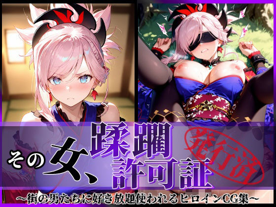 その女、蹂躙許可証発行済み -街の男たちに好き放題使われるヒロインCG集- 沖田〇司編|| ※サンプル画像は都合により、モザイクが荒く又は濃くなっている場合があります。作品紹介【あらすじ】蹂躙許可証…それが発行された女であれば街の人間は誰でもその女を好き放題にすることができるという。これは男たちの欲望によって蹂躙され、弄ばれ、堕とされるヒロインの記録。【作品コンセプト】蹂躙×着エロ×美脚がコンセプトの作品となります。苦渋や快楽に歪むヒロインの表情はもちろん、服を着ているからこそ感じるエロスを存分にお楽しみください。(着エロだけにならないよう裸や裸に近いCGも複数収録しています)また、本シリーズは特に足に力を入れて制作しています。スラっとした足を存分に堪能していただけると思います。※本作に明確なストーリー構成はございません。 ご覧いただく方それぞれのイメージで、自由にお楽しみいただければ幸いです。【作品情報】フルカラー画像:png画像ファイル250枚(差分無し・一部擬音付き)画像サイズ:1824×1248(縦長)【収録内容】・パイズリ・フェラ・バイブ責め・拘束・潮吹き・中出し・乱交・キスハメ・野外・露出・青姦・辱め・ぶっかけ・アへ顔・断面図あり・快楽堕ち・口内指責め・髪引き・首絞め【含まれる要素】本作品には以下の要素が含まれます。寝取られ/無様/わからせ/屋外/敗北/ストッキング/首輪/鎖/手錠/縄/緊縛/縛り/拘束具/猿轡/ボールギャグ/リングギャグ/ギャグ/だいしゅきホールド/イマラチオ/種付け/種付けプレス/密着/オホ声/オホ顔/目隠し/アイマスク/アクメ/リード/騎乗位/正常位/座位/まんぐり返し/バック/後背位/立位/側位/寝バック/立ちバック/立ちフェラ/イマラチオ/顔射/べろちゅー/キス/ディープキス/口内射精/膣内射精/リモコンバイブ/バイブレーター/ストッキング/水着/ミニスカート/下着/ランジェリー/リモコンバイブ/バイブレーター/ディルド/肉便器【作品作成にあたって】※本作はStableDiffusionを使用しています。※加筆修正はしておりますが、AIイラストのため、 一部に破綻や不自然さが含まれる場合がございます。※犯罪行為を助長する意図は一切ございません。何卒ご理解いただけますようお願い申し上げます。