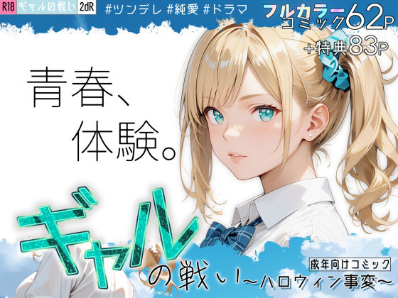 ギャルの戦い 〜ハロウィン事変〜|| 王道の青春ドラマを描いた、オリジナルの成年コミックです。(フルカラー)ヒロインの彼女と、しっかり関係を築き、感情移入しつつエッチを楽しめる作品です。ストーリー性を重視しながらも、エッチも濃厚に充実し、両立させた、満足度の高い作品となっております。また、青春ドラマらしく、読後感は爽やかな仕上がりです。──────────────────────────────◆あらすじ【転校生】星野 琉奈(ほしの るな)主人公のクラスに二学期から編入された、いわゆる、ギャル。抜群のルックスとスタイルで、当然、男子の人気の的──とは、ならなかった。性格に難があるのだ。ただ、一瞬だけ垣間見える、彼女の複雑な表情を、主人公は気に留めていた。そうした日常の中、ハロウィンの夜。意外な経緯から、二人の関係は急激に変化していく…。──────────────────────────────◆特徴★高品質…全てのイラストは、複数の工程と、入念な手直しを経て、作り込まれています。破綻のない、美麗イラストをお楽しみいただけます。※万一、見落し等により不都合がございましたら、ご容赦頂けますと幸いです。★作画…「マンガ」として、通常の作品と遜色のないよう、様々な工夫を施しています。AI単独では不可能なシーンの作成や、3Dモデルをベースにした背景などが特徴です。──────────────────────────────◆ページ構成 本編62P 特典83P 総計145PA. 本編…表紙1P、コミック部分60P、お礼のご挨拶1P、合計62P(解像度…幅1200px・高さ1600px)B. 特典…ご案内1P、本編使用イラストの高解像度版82P、合計83Pヒロインにフォーカスしたイラストのみで、背景は基本的に無しです。(一部を除く)(解像度…最小:幅1000px・高さ1000px 〜 最大:幅2000px・高さ2000px)※本編で見切れている部分も、ご覧になれます。※ピアスは、本編で描き足しておりますので、こちらではほぼ無しとなります。また、衣装などが、本編と異なる場合があります。──────────────────────────────※Stable Diffusion (AI)を作画の基軸として制作しているコミック作品です。 AIの性質として、キャラクターの見え方などに、揺らぎ(振れ幅)が存在します。 極力、違和感の無いよう努めておりますが、特性としてご了承下さい。※この作品はフィクションです。実在の人物・団体・場所などとは無関係です。