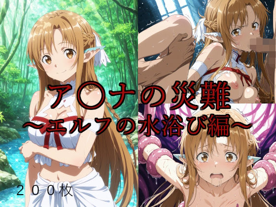 ア〇ナの災難〜エルフの水浴び編〜|| 水浴び中のア〇ナが色々な災難にあってしまうイラスト集です。拘束され敏感なところを執拗に責められたり、終わらない輪〇で感じ始めてしまったり、、何本もの触手に〇されて苗床にされてしまったり、、、JPG形式で200枚1536×2048の高解像度です!※本作品はAIを使用したイラストに加筆・修正を行っています。