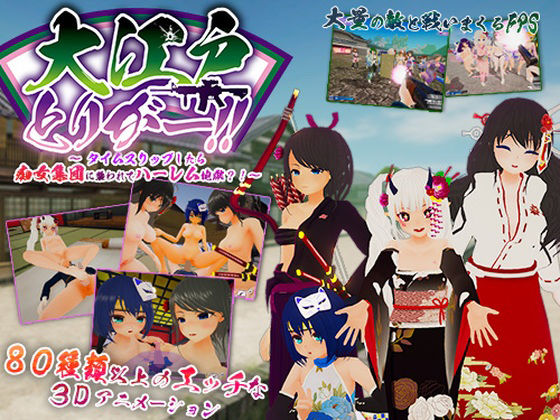 大江戸とりがー!! 〜タイムスリップしたら痴女集団に襲われてハーレム地獄?!|| ■あらすじ平凡な日常を過ごしていた主人公だったが、道端で出会った謎の女の子に助けてほしいと頼まれたしかたないのでOKしたら、とつぜん江戸時代にタイムスリップ?!!大量に襲い来る痴女お姉さんたちと光線銃で戦うことに?!■ゲームシステム一人称視点で戦う、FPS(ファーストパーソンシューティング)ゲームです。戦闘中に女の子に捕まってしまうとエッチな事をされてしまうCQC(Cちょっと Q急に C近いよ)システムが発動します!FPS視点での戦闘以外にも、戦車に乗って戦ったり、ヘリコプターに乗って戦ったり、見下ろし視点(TPS視点)で戦うステージも!!ステージ数は38ステージ!■豊富な武器、成長システム多彩な銃器が装備可能!自分だけの組み合わせで戦え!!印籠チップの組み合わせで特殊な能力を発動可能!!主人公の能力を変化させるだけでなく敵が全員スク水や全裸になっちゃったり、超々爆乳になっちゃったり!!と自由自在■豊富なエロ要素戦闘中に女の子に捕まってしまうと発動するエッチなモーション(CQCシステム)は全部で80種類以上!!(差分あり80種類以上、差分なし30種類以上)自動カメラや主観視点カメラでエッチが見られます。豪華8名の声優によるエッチな言葉責めもモーションに合わせて再生されます!ギャラリー機能も完備。更衣室でエディットした女の子でエッチなモーションを楽しめます。シチュエーションはすべて、Mな人向け、男性受け 逆転なしの逆レ●プです。巨大娘のエッチなモーションもあります!■その他・ゲームパッド対応(もちろんマウスとキーボードでも遊べます)・英語、中国語(簡体字、繁体字)に対応・全年齢モードで、エッチな内容を非表示にすることも可能です・当サークル作品「はーれむ・とりがー!!」とはストーリーの繋がりはありませんので、こちらの作品から遊んで頂いても楽しむことができます。※購入前に必ず体験版で動作確認を行なってください。